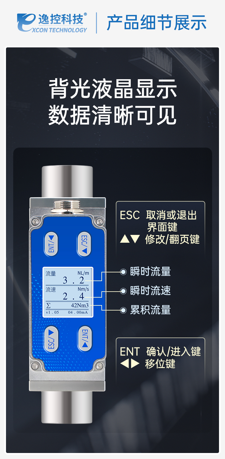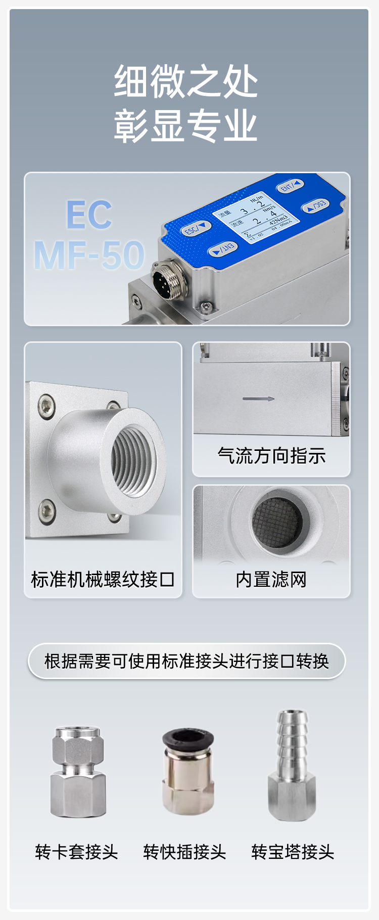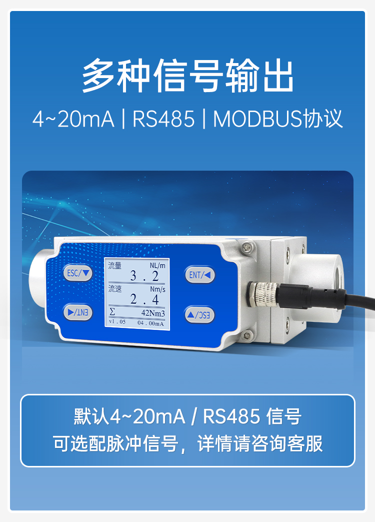 小管道气体测流专用热式气体质量流量计可测空气、二氧化碳、氨气、氧气、氩气等气体广泛用于新能源、锂电池应用配套、窑炉、光伏半导体
