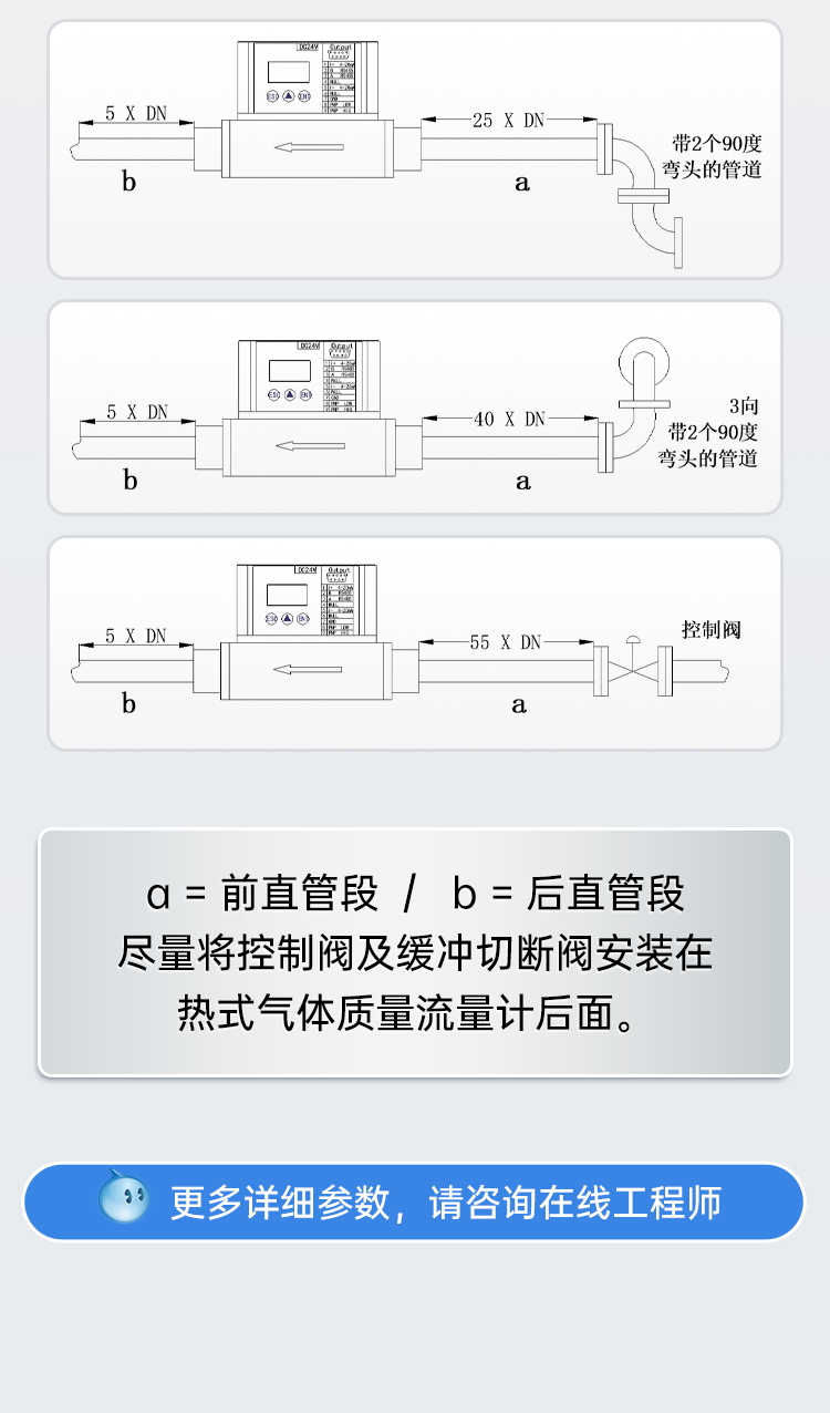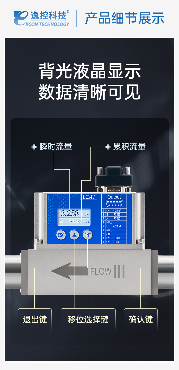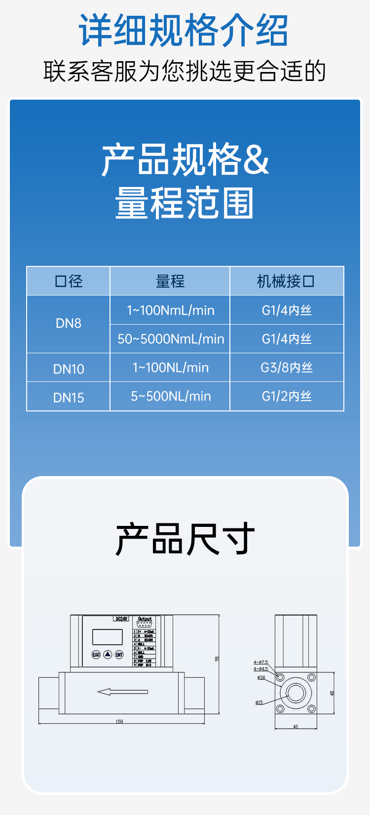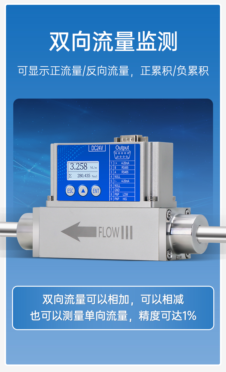 小管道气体测流专用热式气体质量流量计可测空气、二氧化碳、氮气、氧气、氩气等气体广泛用于新能源、锂电池应用配套、窑炉、光伏半导体